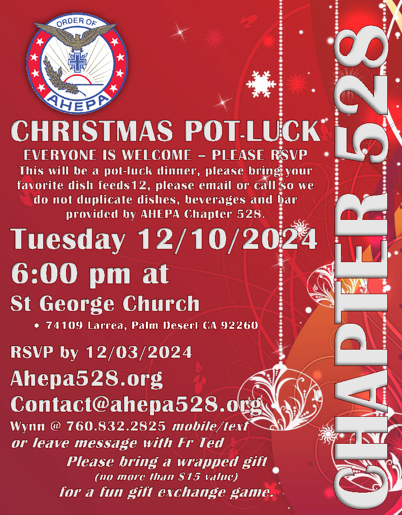 AHEPA 528 meets 2nd Tuesday every Month at 6:30pm. Unless notified differently, meetings at At DENNY'S,